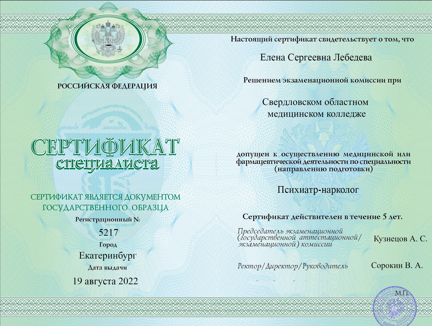 Елена Сергеевна Лебедева врач нарколог клиники доктора Стукаловой в Миньяре